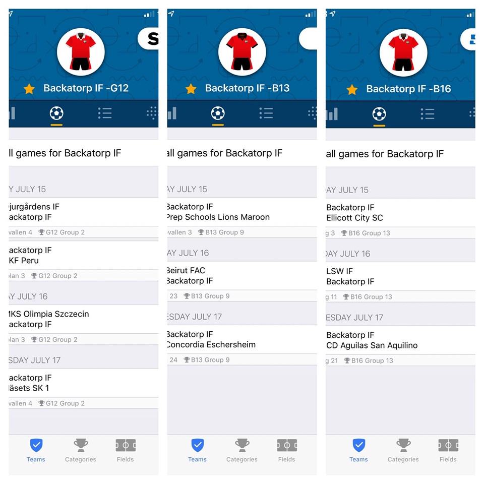Nu närmar sig årets fotbollshändelse och Backatorp IF deltar med 3 lag i Gothia Cup i år F07 P06 P03 I bilfogad bild ser Ni alla tider och matcher i gruppspelet, vill man vara lite mer "med" laddar man ner Gothias app. Vi ses och stort lycka till alla deltagande lag, PS man kan åxå träffa många av oss på ålderskontrollen på kviberg under måndag och tisdag. Hojta gärna till när ni går förbi oss BACKATORP IF