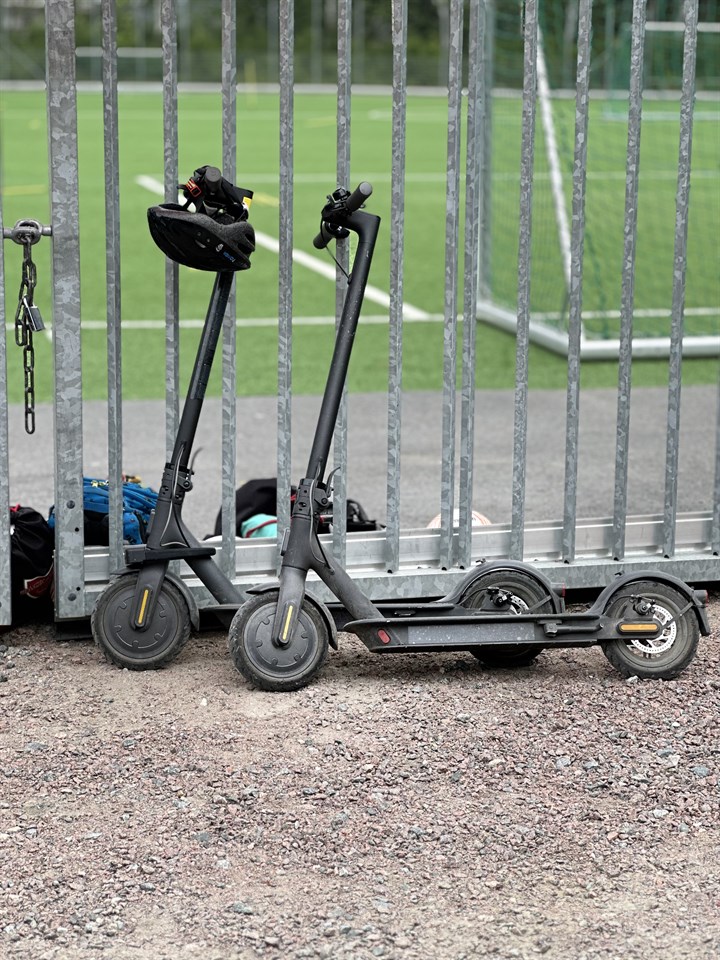 Sparkcyklar/ fordon på och runt fotbollsplanen